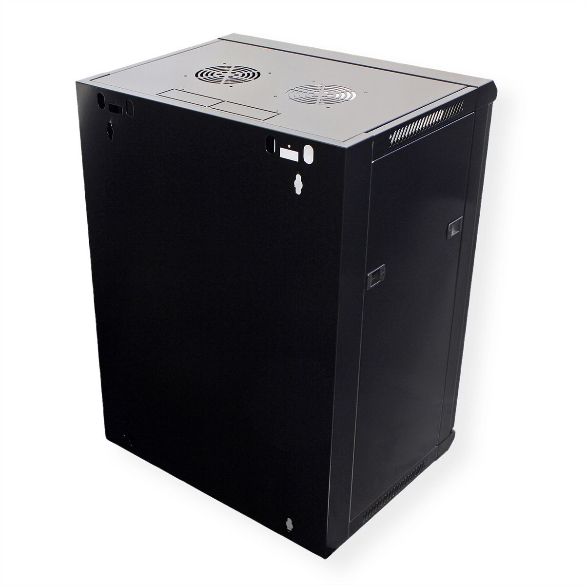 19 15U Wall Housing Basic Depth 600 mm 1-Part Flat Pack RAL9005. Wish there was mounting holes on the top and bottom braces pre-drilled but easily overcome. Front door fully made of certified safety glass thickness 4 mm smoked tempered smoothed antistatic.